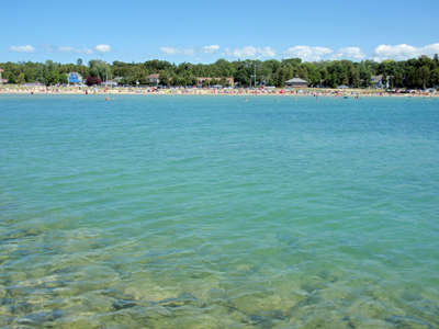 Port Elginのビーチ(ビーチとハーバーの間にある防波堤から)