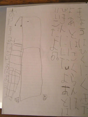 チェリーピッキングに行った翌日の日記で、何やら四角いのはさくらんぼの木だそうだ。