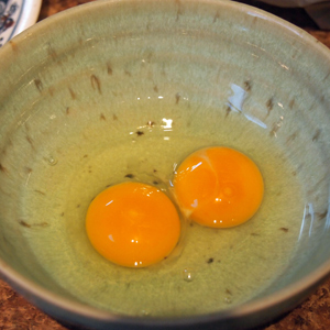 料理に使う為に割ってみたら、黄身が2個入っていた。