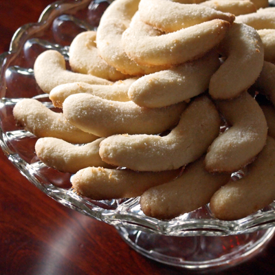クリスマスだから、Vanilla Kipferl(ドイツのクリスマス菓子)を自分ち用にまず焼き、義父母に、人にあげる為にと毎日のように焼いている。