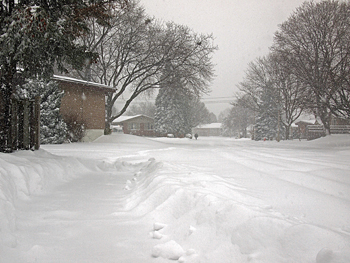 木曜の夜にスノウストームが来るぞ来るぞと、ニュースで盛んに言っていたので、今か今かと待っていたら、だいぶ進み具合が遅いらしくて、今日(金曜)の早朝から降り出した。