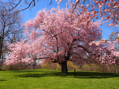 ここの桜は花びらがダブルで濃いピンク色をしているので、より一層きれい。