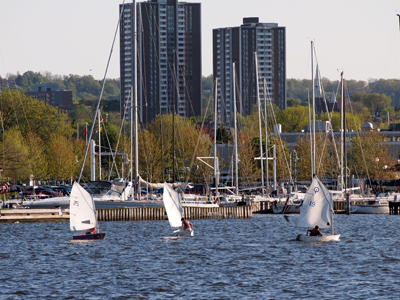 ハミルトンのハーバーにヨットクラブがあって、そこのインストラクターがスカウトの子たちに教えてくれる。