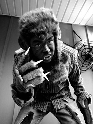 今回、「Werewolf(狼男)になりたい」と言わたのだけど、私はどうしてもやる気がなくて「ガンダルフにすれば―?」とか「じゃあ、あの髪が長くて耳がとがったやつは―?(Lord of the Ringsのキャラクターね)」とか、もうちょっと見栄えのいいのを勧めたのだけど、本人の気持ちは変えられず。